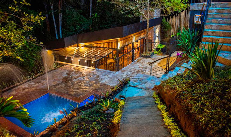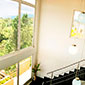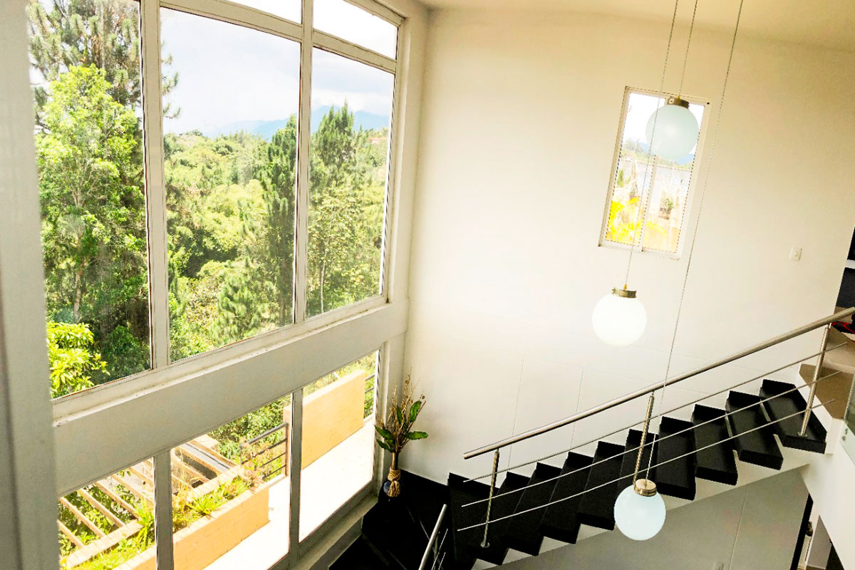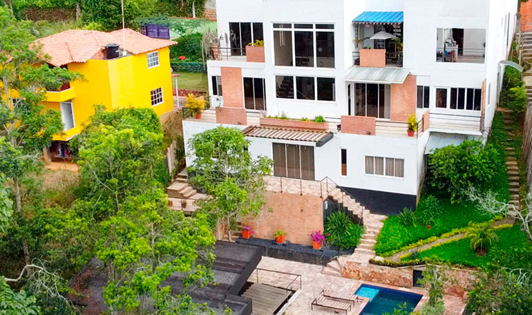 Casa de 3 pisos rodeada de árboles y paisajes de ensueño.